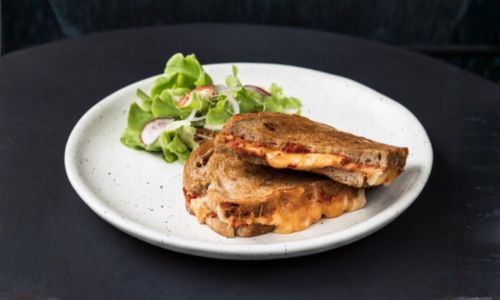 Cheddar, Emmental cheese, tomato chutney served in toasted sourdough